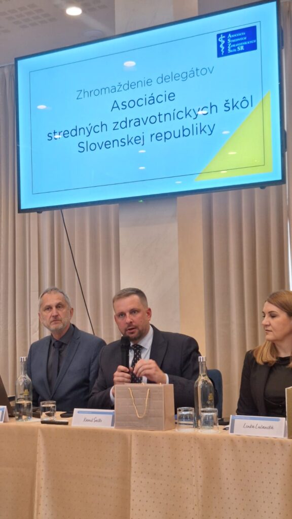 12. decembra 2025Dvojdňové rokovanie delegátov z 29-tich zdravotníckych škôl sa 20-teho a 21-ého apríla 2026 uskutočnilo v hoteli Arcade v Banskej Bystrici. Tak ako minulý rok aj tentokrát sme privítali na našom rokovaní najvyššiu garnitúru ministerstva zdravotníctva. Ministra, hostí a delegátov uvítal podpredseda BB SK Mikuláš Pál a po ňom prezident ASZŠ Miroslav Sekula predstavil program a požiadal ministra zdravotníctva Kamila Šaška o úvodný príhovor. Minister v ňom odmietol „zlé, nesystémové a drahé riešenia, predniesol všeobecné výzvy ako: „Musíme si prestať klamať; my – nie vy; pracujeme na dostupnosti… je potrebné pravidelne odpočtovať…“, sám však vlastný odpočet od minulého roka neposkytol. Je nutné však priznať, že za celé obdobie existencie asociácie (31 rokov) je jediným ministrom zdravotníctva, ktorý sa tohto rokovania zúčastnil. Ďalšie bodu programu boli pragmatickejšie. Národnú stratégiu stabilizácie a riadenia ľudských zdrojov v zdravotníctve do roku 2040 predstavila Lenka Lučanská – poradkyňa ministra; Aktuálne výzvy vzdelávania v SZŠ v SR odprezentovala Janka Hogh, riaditeľka odboru zdravotníckeho vzdelávania MZ SR. Vrámci diskusie k uvedeným bodom vystúpili ďalší hostia – predseda SOZ ZaSS Michal Gedaj a podpredsedníčka Terézia Luptáková, prezident komory súkromných lekárov Marián Šóth i riaditeľ odboru zdravotníctva BBSK Martin Caudt. U všetkých rezonovala podpora potrebných zmien v sektore i zdravotníckom vzdelávaní so zameraním na lepšie využitie potenciálu praktických sestier a potreby skrátenia vzdelávania všeobecných sestier. Po prestávke sme dali slovo hosťom z Čiech. Predseda asociácie zdravotníckych škôl Karel Štix nám priblížil Aktuálne výzvy vzdelávania v ČR a po ňom zaujala miesto Jana Foltýnová z Ostravy , ktorá priblížila delegátom systém skráteného vzdelávacieho programu pre diplomované všeobecné sestry. V tomto pilotnom programe študenti odboru praktická sestra po treťom ročníku môžu zložiť skúšky pre povolanie ošetrovateľ, vo štvrtom zmaturovať a postúpiť do druhého ročníka DVS. Podvečer sme na rokovaní uvítali predsedu poslaneckého výboru NR SR Vladimíra Baláža. Ten sa vo svojom vystúpení negatívne vyjadril k vzdelávaniu všeobecných sestier a potrebu zmeny potvrdil pozvaním delegácie ASZŠSR na rokovanie výboru, ktorému predsedá.